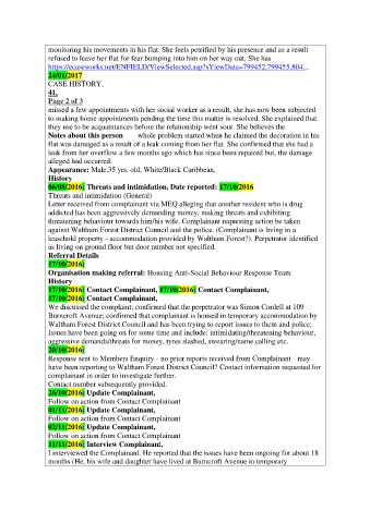leasehold property - accommodation provided by Waltham Forest?). Perpetrator identified