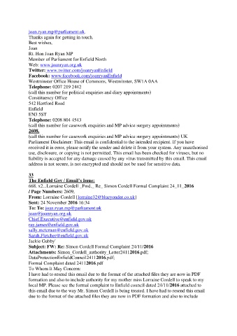 local MP. Please see the formal complaint to Enfield council dated 24/11/2016 attached to