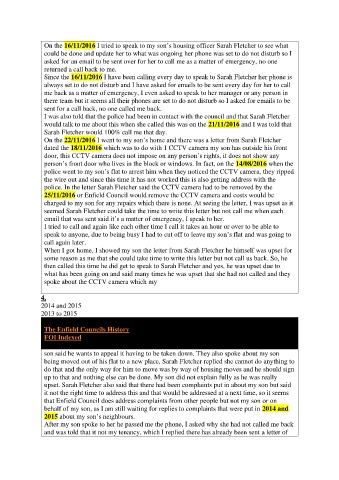 On the 16/11/2016 I tried to speak to my son’s housing officer Sarah Fletcher to see what
