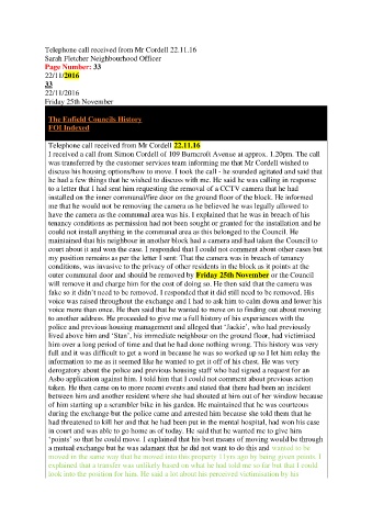 I received a call from Simon Cordell of 109 Burncroft Avenue at approx. 1.20pm. The call