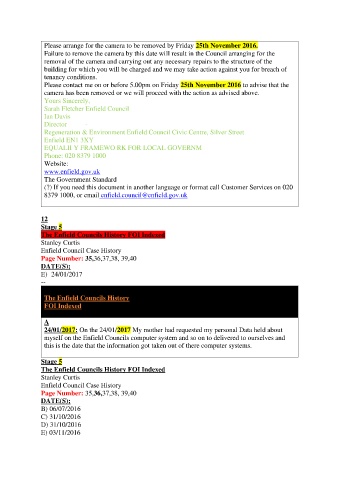 Please arrange for the camera to be removed by Friday 25th November 2016.