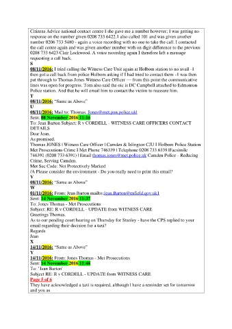 08/11/2016: I tried calling the Witness Care Unit again at Holbom station to no avail -1