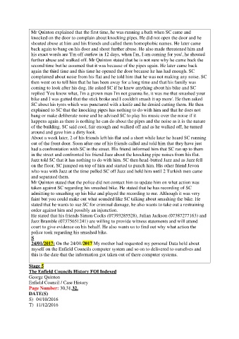 taken against SC regarding his smashed bike. He stated that he has recording of SC