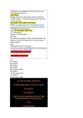 Phone call made to the Witness Service from the
