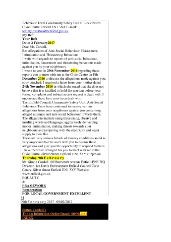 Re: Allegations of Anti-Social Behaviour, Harassment,