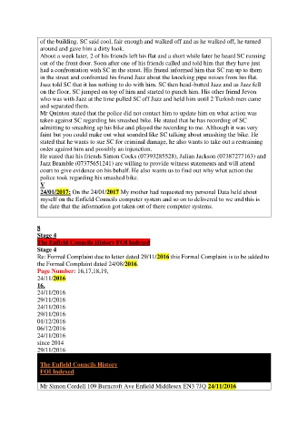 taken against SC regarding his smashed bike. He stated that he has recording of SC