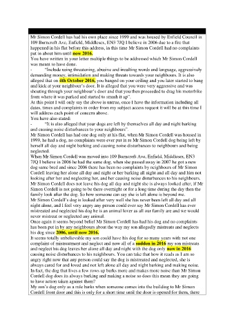 - “It is also alleged that your dogs are left by themselves all day and night barking