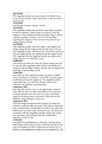 regards to getting a solicitor to act for The Appellant