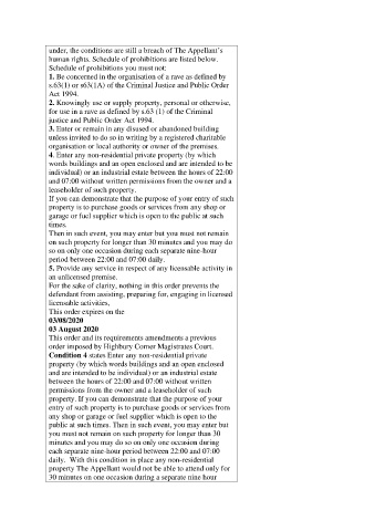 under, the conditions are still a breach of The Appellant’s
