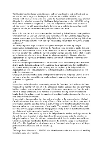 representation put in place due to knowing the Appellant could not cope or handle this case