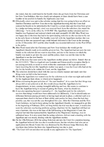by a judge not being merited, a text was received back from the solicitors, this stated the
