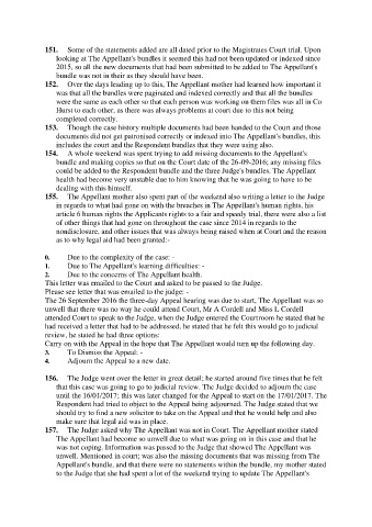 155. The Appellant mother also spent part of the weekend also writing a letter to the Judge