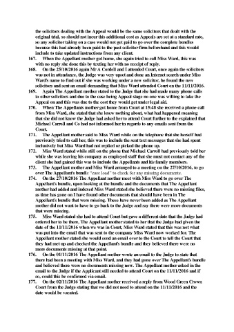 176. On the 01/11/2016 The Appellant mother wrote an email to the Judge to state that