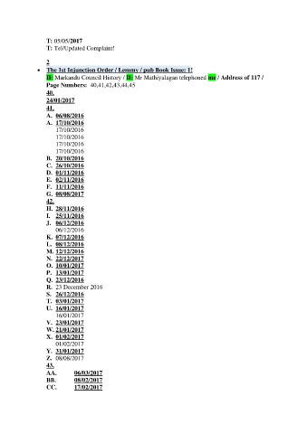 II: Markandu Council History / II: Mr Mathiyalagan telephoned me / Address of 117 /