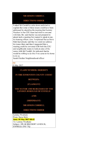 issues with Mr Cordell. He indicated that he