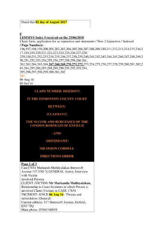 Claim form, application for an injunction and statements / New 2 Injunction / Indexed