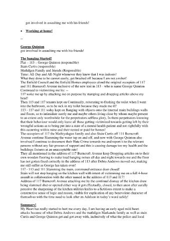 involved I continue to document their Hate Crime towards me and report it to the relevant