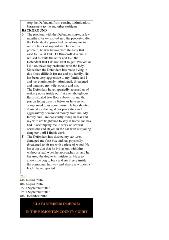 stop the Defendant from causing Intimidation,