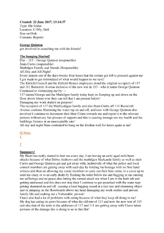 involved I continue to document their Hate Crime towards me and report it to the relevant