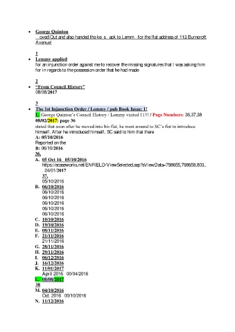 L: George Quinton’s Council History / Lemmy visited 113! / Page Numbers: 36,37,38