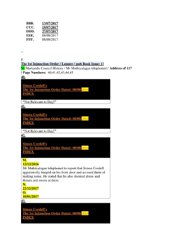 N: Markandu Council History / Mr Mathiyalagan telephoned / Address of 117