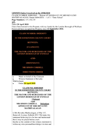 CLAIM NUMBER: E00ED049 – “Repeat off AFFIDAVIT OF MRS REVATHY