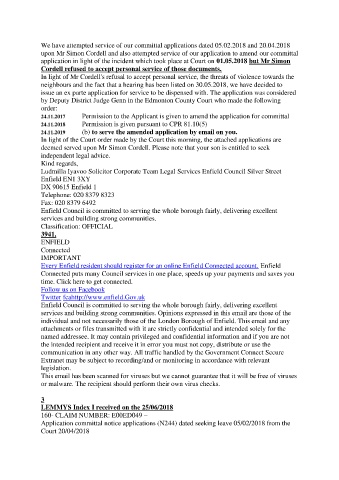upon Mr Simon Cordell and also attempted service of our application to amend our committal