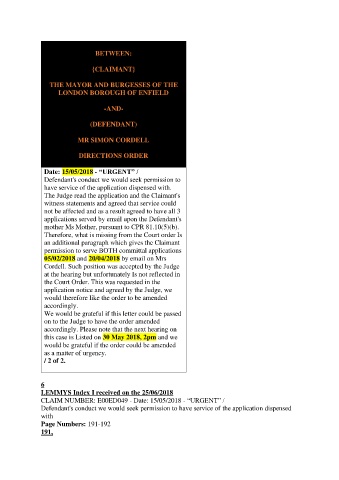 CLAIM NUMBER: E00ED049 - Date: 15/05/2018 - “URGENT” /