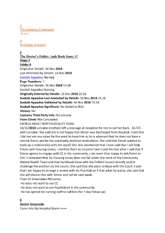 with Lorraine. She said she is not happy that Simon was discharged from hospital. I said that