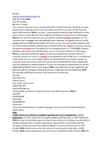 Enfield Mental Health Team on,31't August 2018, you asked that you son's application be