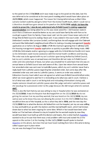 but my son’s solicitor was on annual leave and therefore did not reply to Enfield Council