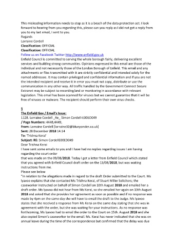 caseworker instructed on behalf of Simon Cordell on 10th August 2018 and emailed her a